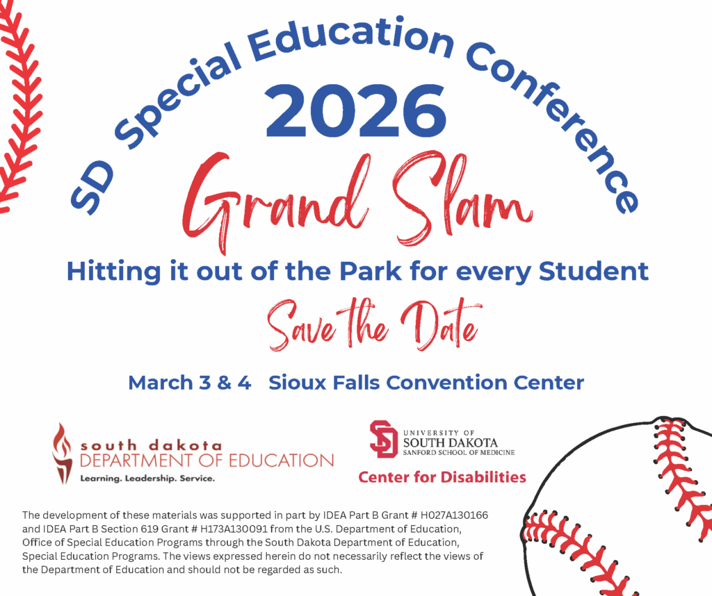 Join families and professionals from across South Dakota at the 2026 South Dakota Special Education Conference. This statewide event brings people together to learn, share ideas, and build skills that support children and youth with disabilities.